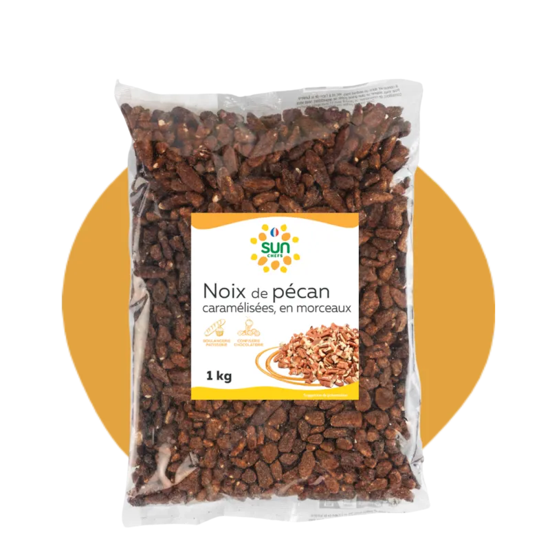Nos noix de pécan en morceaux caramélisés 1 kg allient le croquant naturel de la pécan à une caramélisation maîtrisée, pour offrir un produit gourmand et prêt à lemploi, pensé pour les professionnels de la pâtisserie, de la restauration et de lépicerie fine.