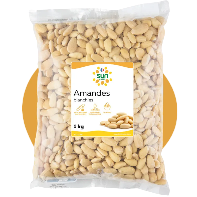 Les amandes émondées SUN CHEFS sont un ingrédient de choix pour les chefs et artisans à la recherche de qualité. Ces amandes, soigneusement émondées pour enlever leur peau, offrent une texture lisse et une saveur douce, idéales pour les préparations délicates telles que les pâtisseries fines, les crèmes d'amandes ou les nougats. Leur couleur claire et leur qualité constante en font un indispensable dans toute cuisine professionnelle. Les amandes, réputées pour leur richesse en nutriments, contiennent des protéines et des graisses bénéfiques. Cultivées dans des vergers ensoleillés, elles sont idéales pour une collation savoureuse et revitalisante, apportant une touche de bien-être à votre quotidien. Les oléagineux sont adaptés pour une collation ou encore pour être intégrés à vos recettes préférées sucrées comme salées. Ils se consomment aussi bien au naturel, crus mais se prêtent aussi très bien à la torréfaction au four ou dans une poêle ou encore pour en faire une pate à tartiner. Notre offre Sun Chefs sadresse aux professionnels de la restauration avec une équipe dédiée. Cest en interrogeant des chefs et en passant du temps avec vous en cuisine, que nous avons pu mieux comprendre vos challenges du quotidien et imaginer une offre sur-mesure !Texture, parfums, décoration, nous vous aidons à sublimer vos recettes en révélant tout le potentiel des fruits secs.Des recettes inspirantes, une large gamme de produits, des conseils dutilisation, cest dans cet univers que la marque Sun Chefs vous invite ! - Amandes émondées - 10x1kg - Sun Chef - Origine USA ou Australie