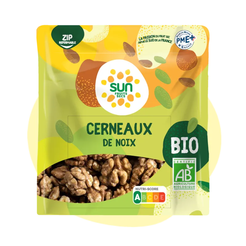 Découvrez nos cerneaux de noix bio issus de lagriculture biologique, rigoureusement sélectionnés pour leur qualité et leur goût authentique. Naturellement riches en acides gras insaturés, en fibres et en minéraux, ils constituent un ingrédient précieux pour une alimentation équilibrée et pleine de vitalité. Cultivés sans pesticides ni produits chimiques, ils respectent les exigences du cahier des charges européen de lagriculture biologique. Disponibles en sachets doypack, ces cerneaux sont prêts à lemploi pour gagner du temps en cuisine tout en conservant toutes leurs qualités naturelles.