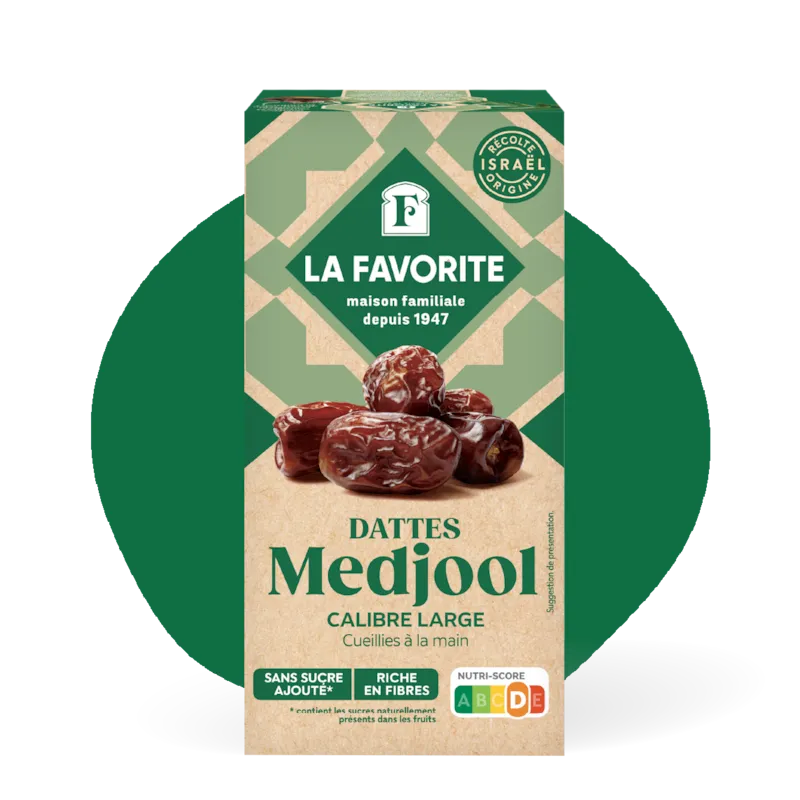 Surnommée « Reine des dattes», la Medjool est très appréciée pour son coté très charnue, son goût miel et ses notes de confiture de marron unique. Nous sélectionnons un calibre large d'une qualité exceptionnelle. Retrouvez des fruits séchés cultivés, récoltés et sélectionnés dans le respect de la tradition dans notre gamme SELECTION TRADITIONNELLE ! En ajoutant les fruits sechés dans votre alimentation, vous pouvez profiter de leur douceur naturelle, de leur texture agréable et de leurs bienfaits pour la santé tout au long de la journée. Ils sont parfaits pour une collation rapide et énergisante grâce à leurs sucres naturels qui se diffusent rapidement ou encore en accompagnement d'une planche de fromage. Les saveurs de La Favorite sont héritées du savoir-faire des cultures de fruits provenant de terroirs rigoureusement sélectionnés.Maison familiale depuis 1947, La Favorite s'est installée aux portes de la Méditerranée, au plus proche des cultures et de ses partenaires.Notre histoire s'est ainsi écrite par l'union d’Hommes, de régions et de terre, permettant de vous offrir des fruits gourmands, naturels et sains. Un mélange harmonieux pour un oasis de plaisir d'hier à aujourd'hui ! - Dattes Medjool séchées 8x400g - 100% Naturelles - Idéales pour Snacking et Recettes sucrées et salées - Charnues et Fondantes - LA FAVORITE