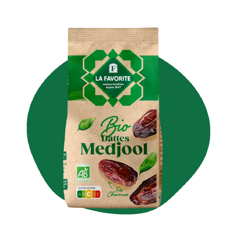Depuis plus de 70 ans, la Favorite a développé une grande expertise dans la sélection des meilleurs terroirs de fruits séchés. Surnommée « Reine des dattes », la Medjoul est une datte de gros calibre, très appréciée pour sa chair délicate, presque juteuse. Cette variété originaire du Maroc est aujourd’hui cultivée principalement en Californie et au Moyen-Orient, dans les vallées du Jourdain et de l’Arava. Dans la gamme PANIER FRUITE, cueillez, partagez et savourez le meilleur du fruit, selon la tradition ! En ajoutant les fruits sechés dans votre alimentation, vous pouvez profiter de leur douceur naturelle, de leur texture agréable et de leurs bienfaits pour la santé tout au long de la journée. Ils sont parfaits pour une collation rapide et énergisante grâce à leurs sucres naturels qui se diffusent rapidement ou encore en accompagnement d'une planche de fromage. Les saveurs de La Favorite sont héritées du savoir-faire des cultures de fruits provenant de terroirs rigoureusement sélectionnés.Maison familiale depuis 1947, La Favorite s'est installée aux portes de la Méditerranée, au plus proche des cultures et de ses partenaires.Notre histoire s'est ainsi écrite par l'union d’Hommes, de régions et de terre, permettant de vous offrir des fruits gourmands, naturels et sains. Un mélange harmonieux pour un oasis de plaisir d'hier à aujourd'hui ! - Dattes Medjool Bio séchées 8x350g - Riches en Fibres - Idéales pour Snacking Sain - Tendres et Savoureuses - La Favorite