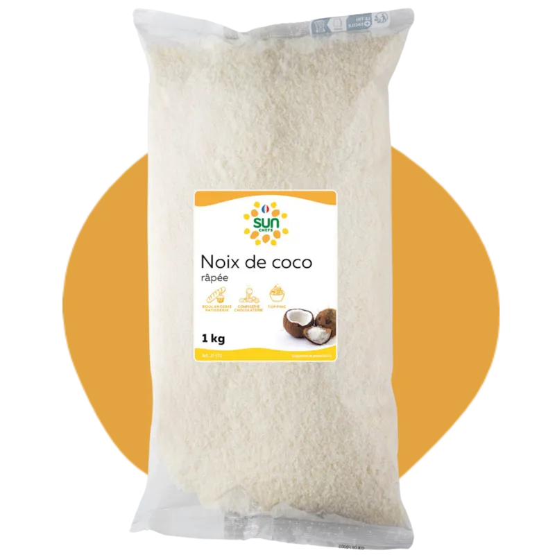 La noix de coco râpée fine est un ingrédient versatile qui ajoute une saveur tropicale et une texture délicate à vos préparations. Idéale pour les pâtisseries, les granolas, et les garnitures décoratives, elle est parfaite pour intégrer une touche de noix de coco dans vos recettes. Sa texture fine permet une incorporation homogène et une présentation élégante dans vos créations culinaires. La noix de coco, exotique et délicieusement sucrée, est parfaite pour une collation savoureuse et énergisante, ajoutant une touche tropicale à vos pauses gourmandes. Les oléagineux sont adaptés pour une collation ou encore pour être intégrés à vos recettes préférées sucrées comme salées. Ils se consomment aussi bien au naturel, crus mais se prêtent aussi très bien à la torréfaction au four ou dans une poêle ou encore pour en faire une pate à tartiner. Notre offre Sun Chefs s’adresse aux professionnels de la restauration avec une équipe dédiée. C’est en interrogeant des chefs et en passant du temps avec vous en cuisine, que nous avons pu mieux comprendre vos challenges du quotidien et imaginer une offre sur-mesure !Texture, parfums, décoration, nous vous aidons à sublimer vos recettes en révélant tout le potentiel des fruits secs.Des recettes inspirantes, une large gamme de produits, des conseils d’utilisation, c’est dans cet univers que la marque Sun Chefs vous invite ! - Noix de coco râpée - Fine - 6x1kg - Sun Chefs