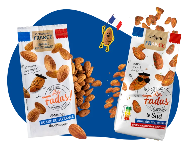 Chez Les Fadas, on aime ce qui a du goût, du caractère et surtout… ce qui vient de chez nous ! Nos amandes françaises, cultivées en Provence, sont le fruit d’un savoir-faire local et d’un terroir d’exception. Entre soleil généreux et terres nourricières, elles développent une saveur unique et une texture croquante à souhait.