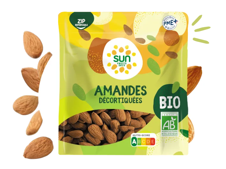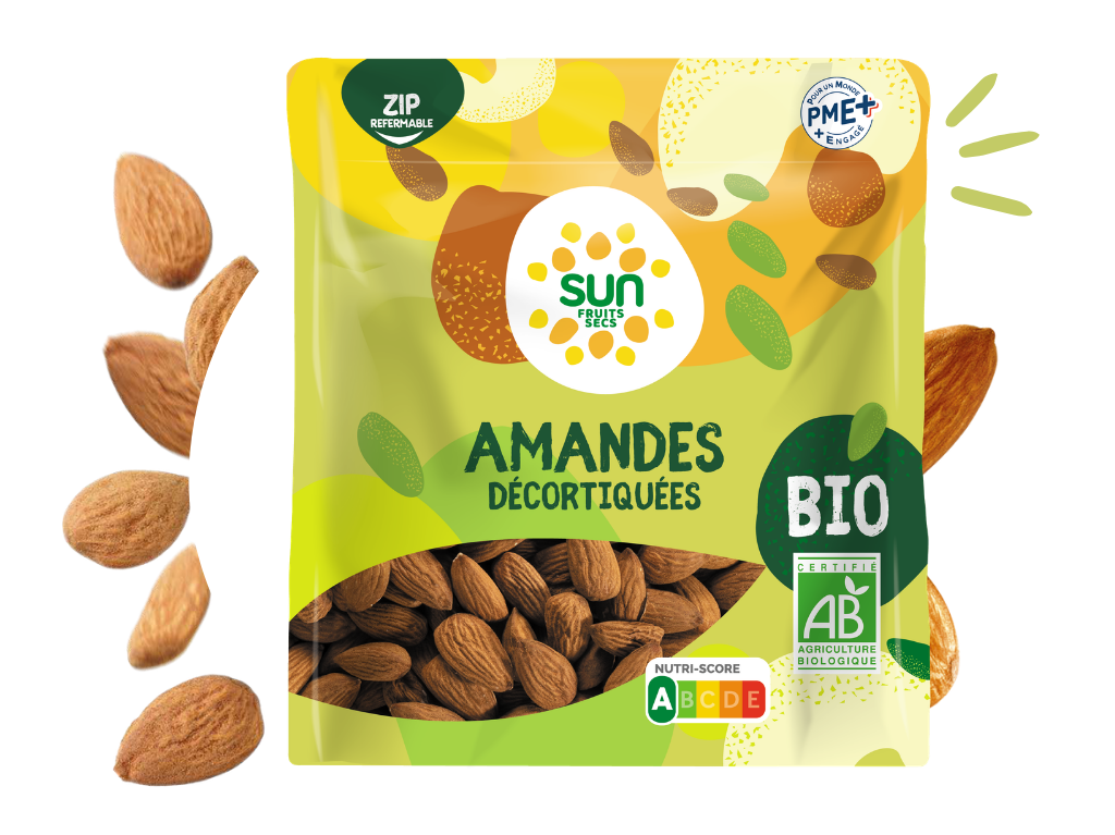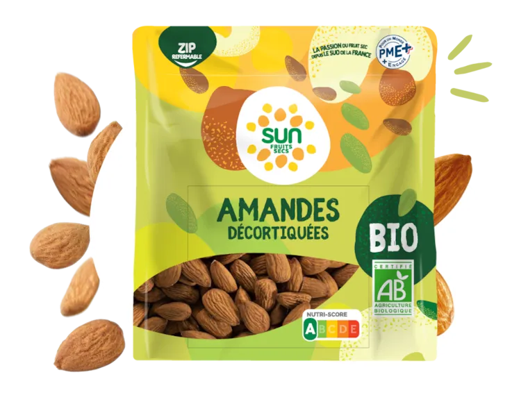 Découvrez nos amandes décortiquées bio, issues de l’agriculture biologique et rigoureusement sélectionnées pour leur qualité et leur goût authentique.