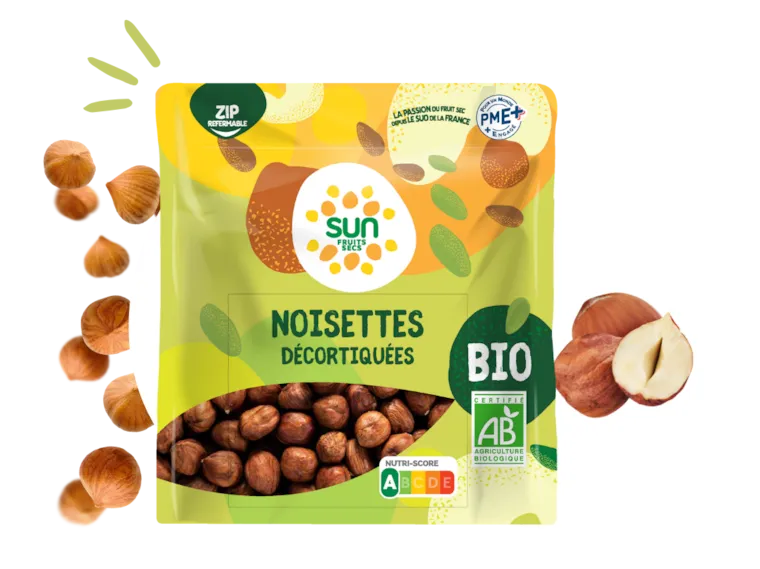 Croquantes et intensément parfumées, nos noisettes bio sont récoltées avec soin dans des vergers certifiés biologiques, puis simplement décortiquées pour préserver toute leur naturalité.