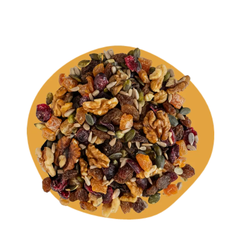 Il associe avec harmonie graines de tournesol, graines de courge, raisins secs, cerneaux de noix, cubes dabricot sec et cranberries séchées sucrées, pour offrir une diversité de textures et de saveurs : croquant, fondant, douceur fruitée et notes légèrement acidulées.