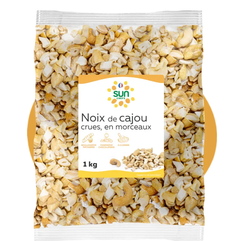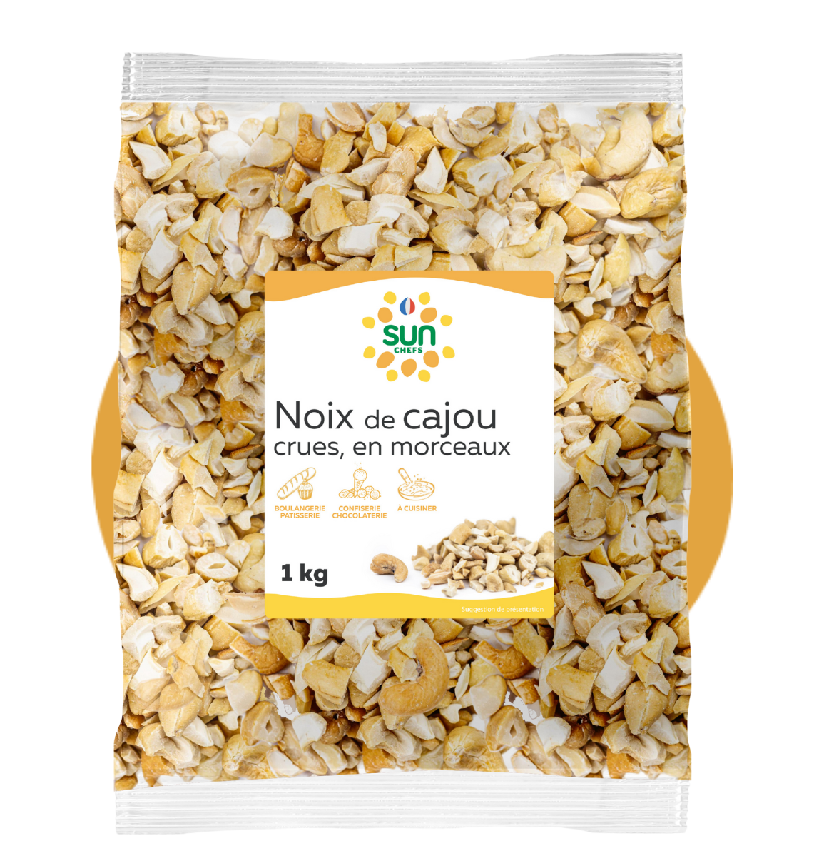 Les noix de cajou en grandes pièces offrent une texture crémeuse et une saveur douce qui enrichissent vos préparations culinaires. Parfaites pour les pâtisseries, les mélanges de fruits secs, et comme garniture décorative, elles ajoutent une dimension gourmande à vos recettes. Leur taille généreuse garantit une présentation attrayante et une qualité constante pour les professionnels. Les noix de cajou, délicieusement crémeuses et croquantes, sont parfaites pour une collation gourmande et nutritive, ajoutant une touche d'exotisme et d'énergie à votre journée, mais aussi un peu de croquant pour sublimer vos plats ! Les oléagineux sont adaptés pour une collation ou encore pour être intégrés à vos recettes préférées sucrées comme salées. Ils se consomment aussi bien au naturel, crus mais se prêtent aussi très bien à la torréfaction au four ou dans une poêle ou encore pour en faire une pate à tartiner. Notre offre Sun Chefs sadresse aux professionnels de la restauration avec une équipe dédiée. Cest en interrogeant des chefs et en passant du temps avec vous en cuisine, que nous avons pu mieux comprendre vos challenges du quotidien et imaginer une offre sur-mesure !Texture, parfums, décoration, nous vous aidons à sublimer vos recettes en révélant tout le potentiel des fruits secs.Des recettes inspirantes, une large gamme de produits, des conseils dutilisation, cest dans cet univers que la marque Sun Chefs vous invite !
