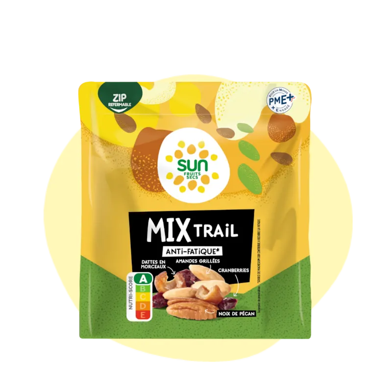 SUN vous propose une gamme à consommer A TOUT MOMENT, pour une pause encas saine et gourmande ! De quoi faire le plein d'énergie, avec des produits préparés avec amour à Marseille ! En incorporant des mix de fruits secs dans votre alimentation quotidienne, vous pouvez profiter de leur saveur délicieuse et de leurs bienfaits pour la santé. En collation saine, dans vos recettes sucrées ou salées ou encore en topping, les fruits secs vous accompagnent ainsi au quotidien. Chez nous, SUN, PME familiale indépendante du Sud de la France, transformer nos graines en pépites de bonheur, nous en faisons notre métier depuis plus de 40 ans !