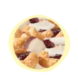 NOIX DE CAJOU enrobée à la noix de coco, aromatisée 65% (noix de cajou 90%, noix de coco râpée 4.8%, agent d'enrobage : gomme arabique, farine de riz, sucre, sirop de riz déshydraté, arôme naturel), cranberries séchées et sucrées 25% (cranberries, sucre, huile de tournesol), lamelles de noix de coco séchées 10%
