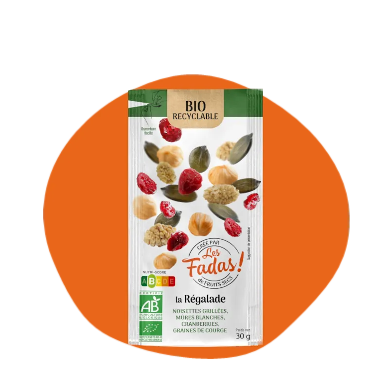 Une P'TITE FRINGALE ? Découvrez dans un format POCKET, nos mix de fruits secs BIO, vraiment dégaines conçus spécialement par notre équipe de Fadas à Marseille. 30g est la portion journalière d'oléagineux recommandée par le programme national de nutrition santé. Une fiesta pour les papilles et un plein de vitalité, qui vous accompagne à tout moment ! Un petit format qui vous accompagnera partout ! En incorporant des mix de fruits secs dans votre alimentation quotidienne, vous pouvez profiter de leur saveur délicieuse et de leurs bienfaits pour la santé. En collation saine, en topping dans vos recettes sucrées ou salées, les fruits secs vous accompagnent ainsi au quotidien !