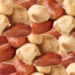 Petit pois enrobé de sel et de poivre 50% (petits pois verts 62%, amidon de maïs modifié, farine (blé (gluten), riz), huile de tournesol, sucre, sel de mer 1%, poivre noir 0.2%, agent levant (E503), arôme, dextrose, poivre blanc 0.1%, extrait de poivre noir, piment jalapeño 0.03%, agent anti-agglomérant (E551, E341)), ARACHIDES grillées salées 50% (arachides 97%, sel 1%, agent d'enrobage : gomme arabique).