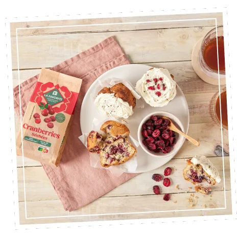Donnez une touche d'originalité à vos muffins avec nos délicieuses cranberries mais également grâce à un succulent glaçage au fromage frais et à la vanille !