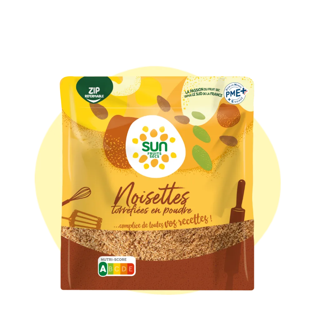 Mélangez la farine, la poudre de noisette et la levure puis ajoutez peu à peu ce mélange à la préparation. Ensuite ajoutez les pépites de chocolat et éclat de noisettes.