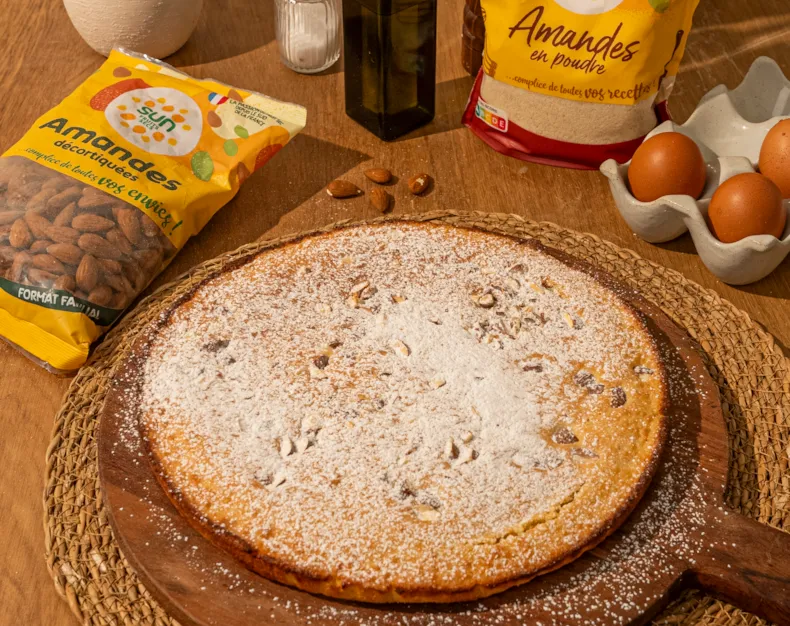 Concassez et coupez vos amandes à l'aide d'un couteau. Ensuite parsemez-les sur votre pâte à gâteau pour ajouter du croquant.