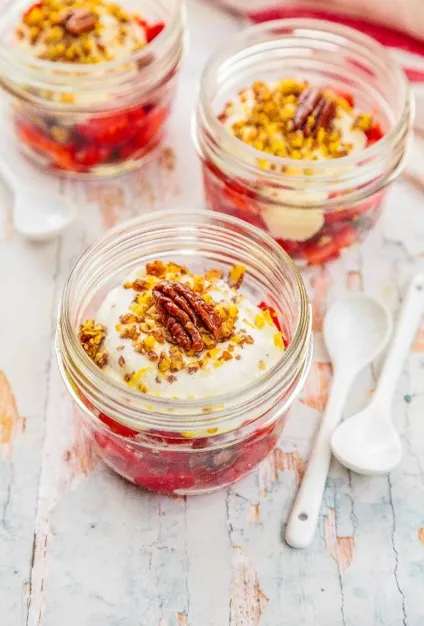 Tartare de fraises, noix de pécan caramélisées et chantilly ricotta