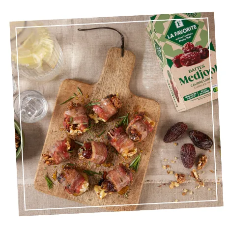La recette parfaite pour twister vos apéros et impressioner vos convives ! Une décliceuse associations de nos dattes medjool avec des tranches de poitrines fumées, des cerneaux de noix et du fromage... Personne ne pourra y resister !!